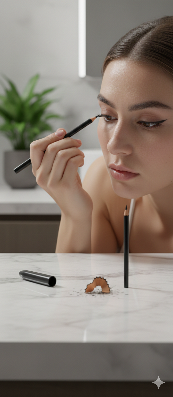 Juodas akių kontūro pieštukas su drožtuku – ryškiam ir tiksliam žvilgsniui