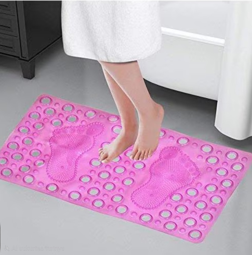 Užtikrinkite saugumą ir suteikite savo kojoms poilsį kiekvieną kartą prausiantis. Šis ryškus, rožinis masažinis kilimėlis sukurtas tam, kad apsaugotų jus nuo paslydimo ant šlapių paviršių bei suteiktų malonų pėdų masažą po ilgos dienos.
