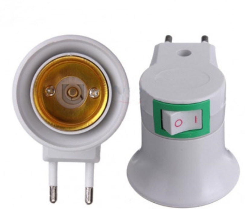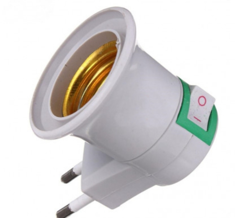 Kompaktiškas E27 lizdo adapteris su jungikliu (tiesiai į rozetę)