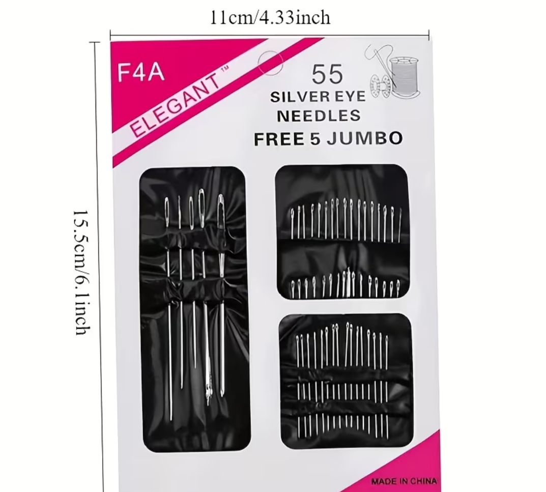 - Gausus rinkinys: iš viso net 55 sidabrinės akutės adatos vienoje pakuotėje.