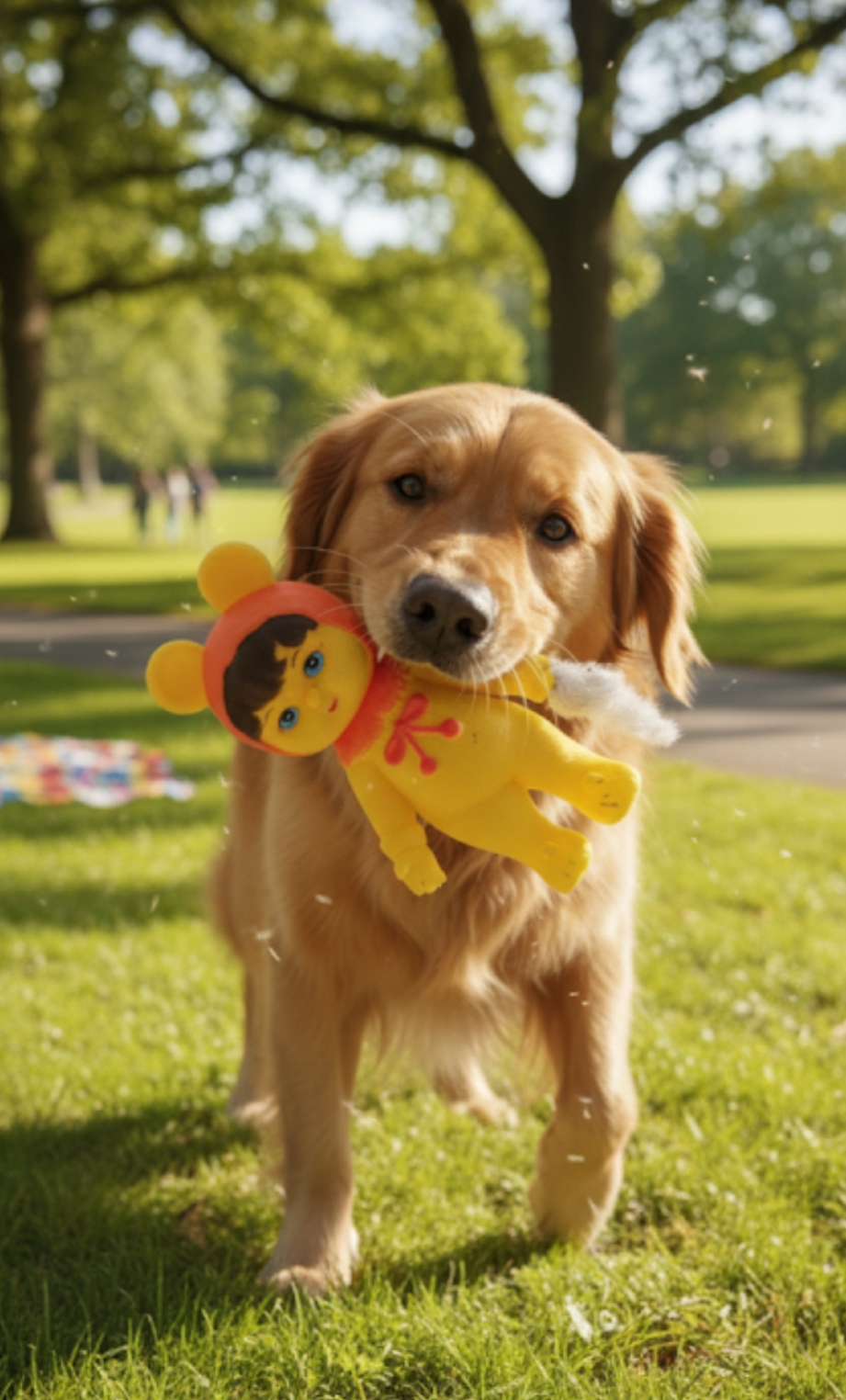 - Išskirtinis dizainas: Geltonas korpusas su ryškiomis detalėmis (raudona kepure ir akcentais) yra lengvai pastebimas tiek namuose ant kilimo, tiek lauke ant žolės.