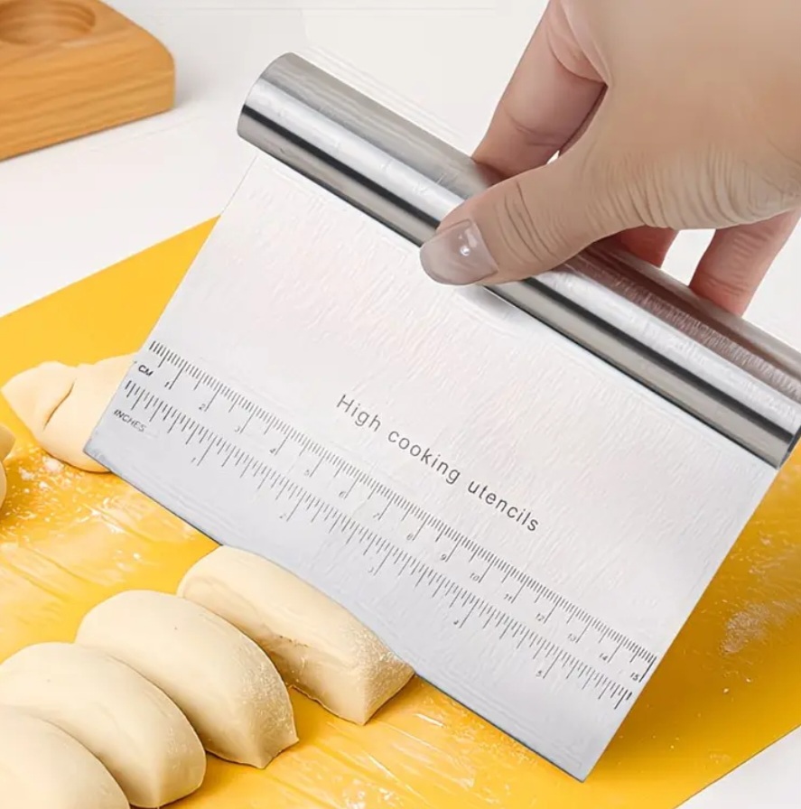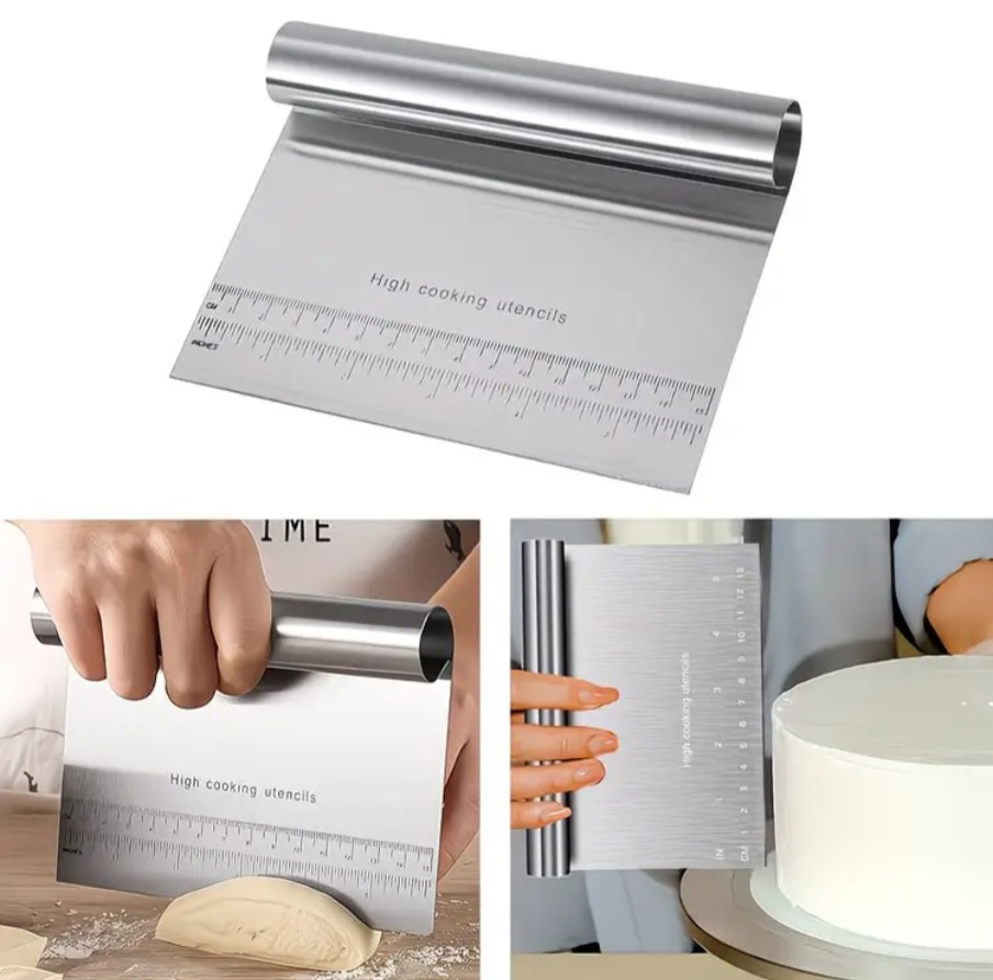 - Daugiafunkcis naudojimas: Puikiai tinka tešlos pjaustymui, porcijų skirstymui, paviršių nugrandymui ar net tortų kremui išlyginti.