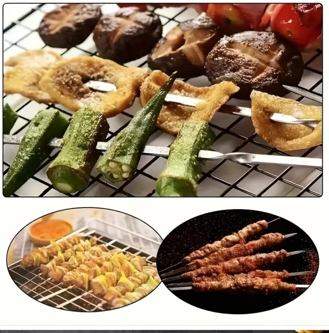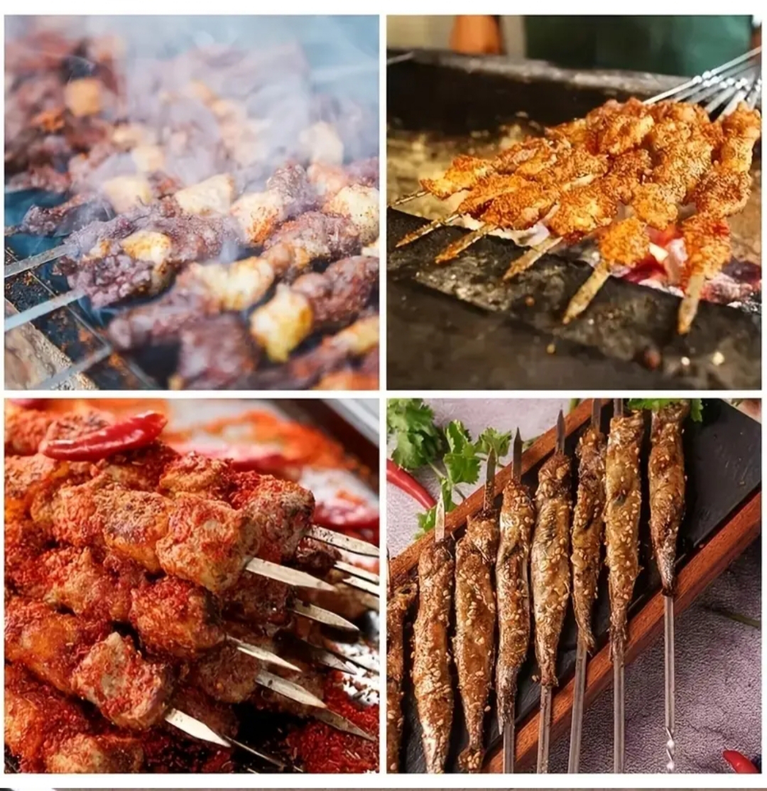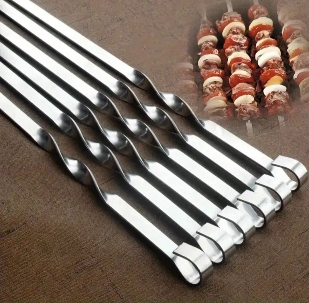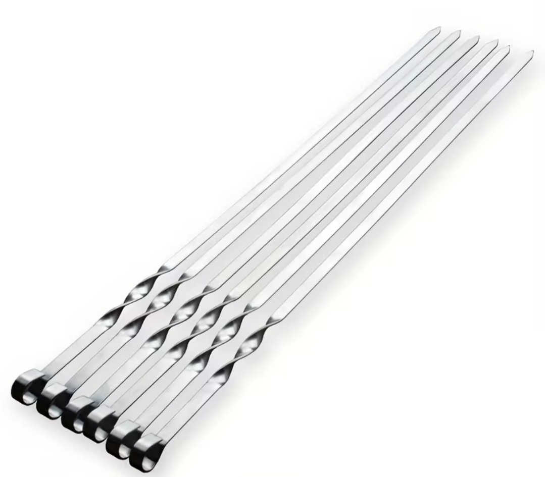 Tvirti metaliniai iešmai su vijomis – 6 vnt. komplektas nepriekaištingam kepsnių ruošimui