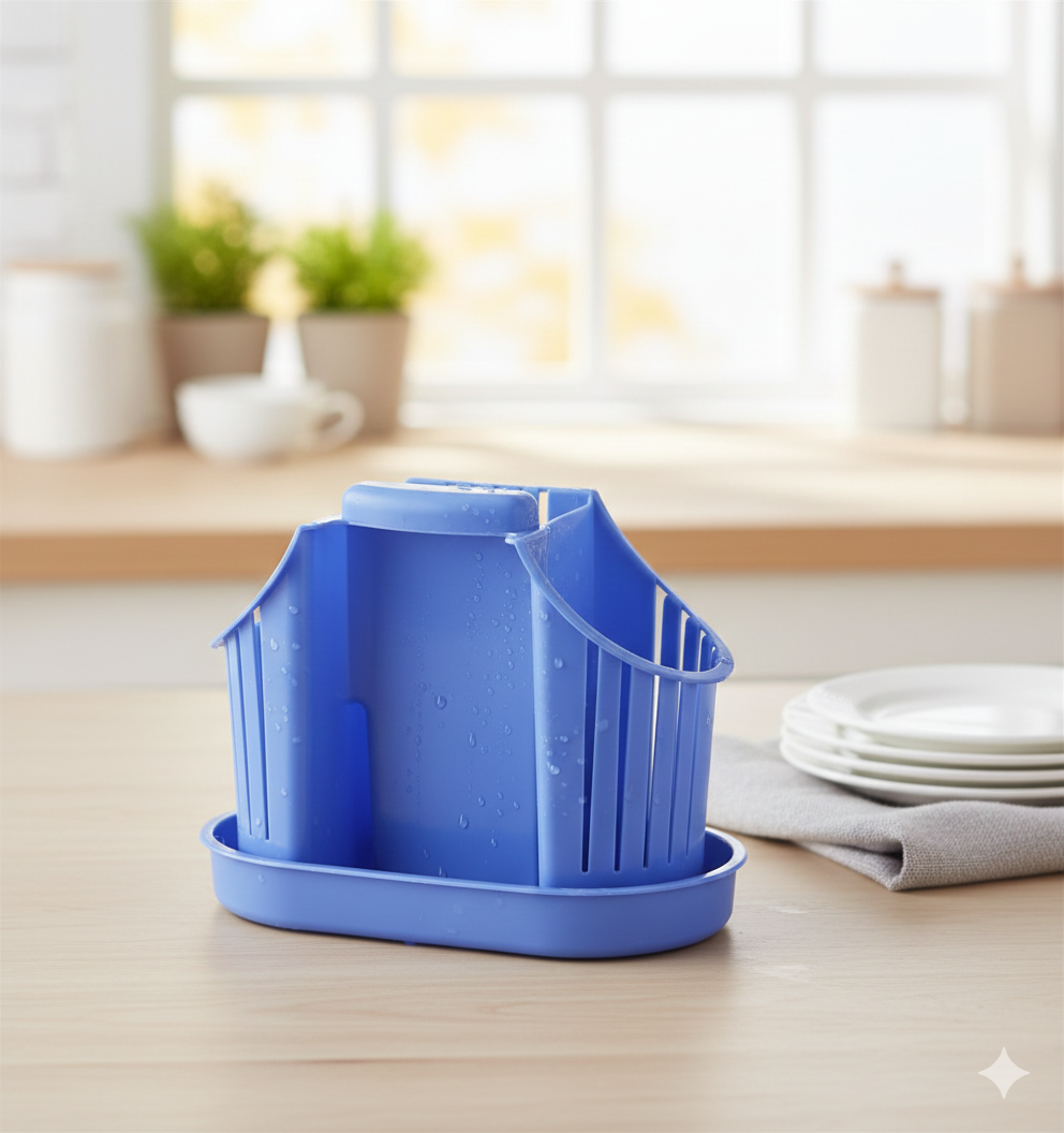 Suteikite savo virtuvei tvarkos ir modernaus stiliaus! Ši ryškiai mėlyna įrankių džiovykla yra ne tik praktiškas sprendimas po indų plovimo, bet ir estetiška detalė ant jūsų stalviršio.