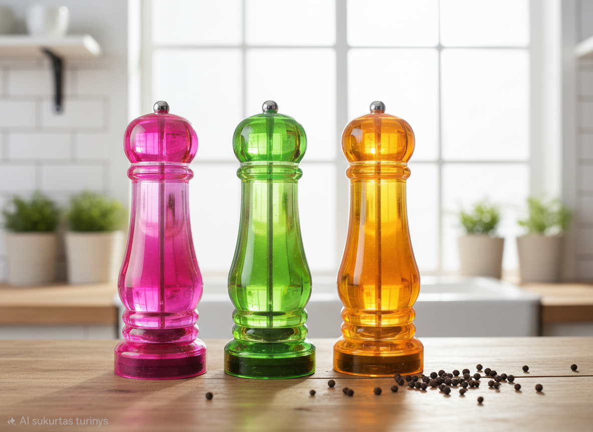 - Skaidrus korpusas: Pagamintas iš aukštos kokybės skaidraus plastiko, todėl visada matysite, kiek prieskonių (pipirų, druskos ar kitų žolelių) liko viduje.