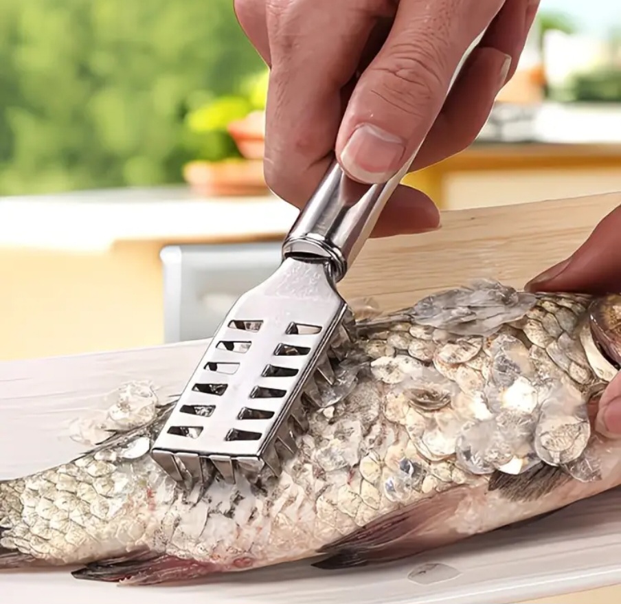 - Higieniška ir saugu: Skirtingai nei peilis, šis skustukas mažina riziką susižeisti ar pažeisti pačią žuvies mėsą valymo metu.