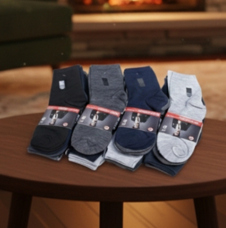 Mėgaukitės natūralumu ir komfortu kiekviename žingsnyje! Šis 5 porų vyriškų kojinių komplektas yra idealus pasirinkimas ieškantiems kokybiško apatinio trikotažo kasdieniam dėvėjimui. Klasikinės spalvos ir aukščiausios rūšies medvilnė užtikrina, kad kojinės puikiai tiktų tiek prie sportinės aprangos, tiek prie dalykinio stiliaus kelnių.