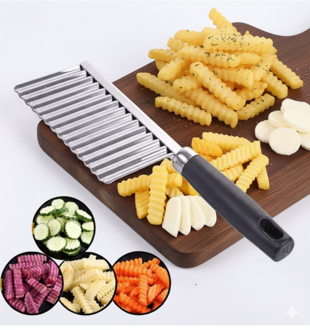 - Daugiafunkcinis įrankis: Puikiai tinka ne tik banguotoms bulvytėms („fries“) ruošti, bet ir sūriui, agurkams, morkoms, cukinijoms ar vaisiams pjaustyti.