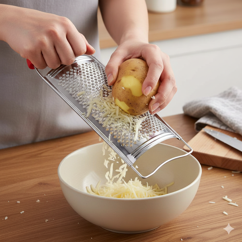 - Ergonomiška rankena: Patogus laikymas užtikrina stabilumą, todėl ranka nepavargsta net ir tarkuojant kietesnius produktus.